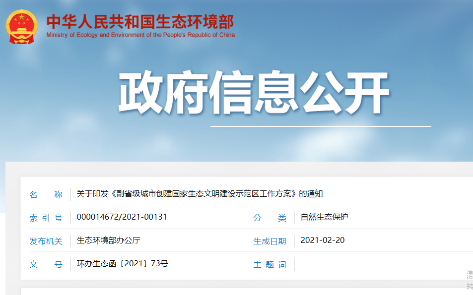 關于印發《副省級城(chéng)市(shì)創建國(guó)家(ji> ā)生(shēng)态文(wén)明(míng)建設示範區(qū)工‍★↑σ(gōng)作(zuò)方案》的(de)通(tōng)知(zhī)