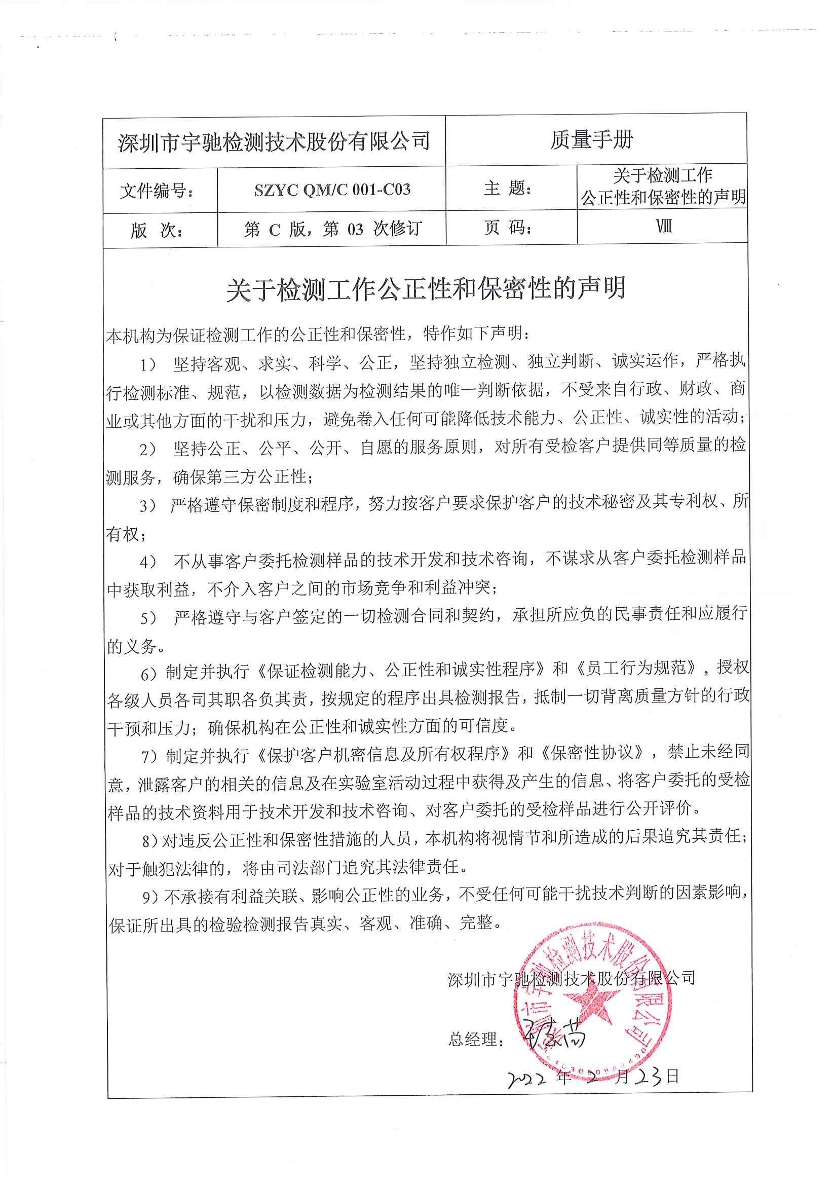 關于檢測工(gōng)作(zuò)公正性和(hé)保密性的(de)聲明(☆αmíng)